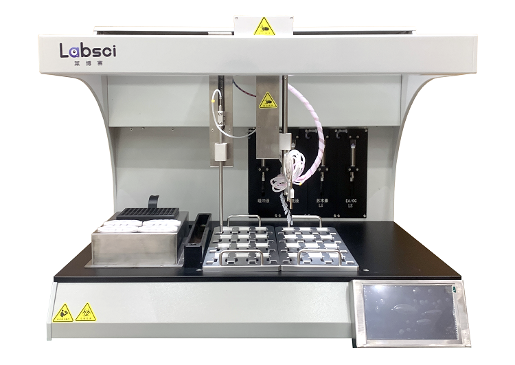 制片染色一體機制片染色一體機型號:LBS-ZP24適用范圍/預期用途:用于樣本前對脫落細胞的固定、染色通量:24、48尺寸與重量:機器尺寸:24型760mm*655mm*600mm/重量:60gk48型1225mmX725mmX700mm/重量:120gk產(chǎn)品介紹:制片染色一體機,能夠自動將液基細胞樣本制作成薄層細胞制片。它可以通過自動樣本轉(zhuǎn)移、自動涂布樣本、自動制片染色等功…